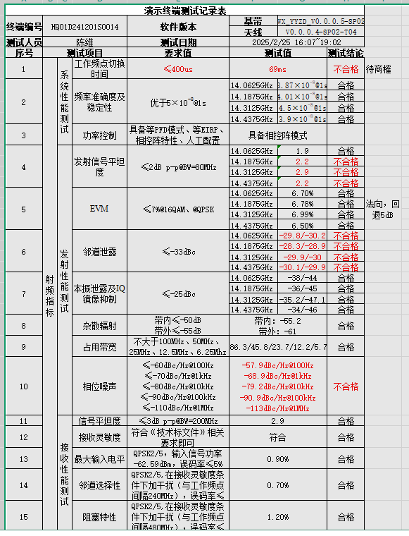 2025/3/11 该终端之前反向功率低,今天暗室重新校准后进行小环测试。